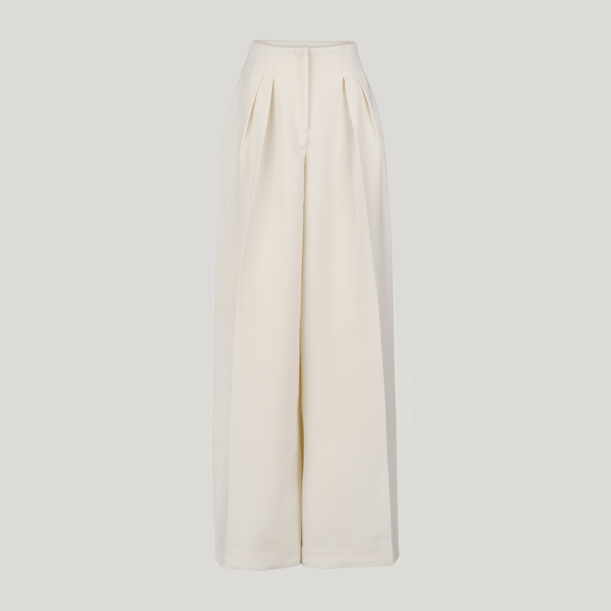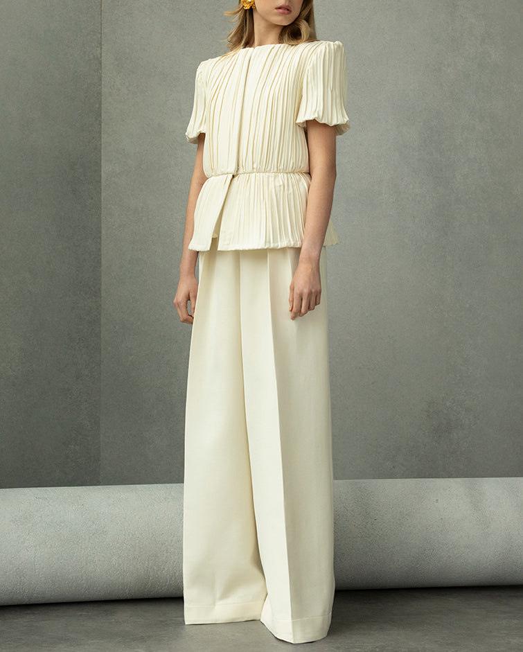 Our limited edition Casablanca Palazzo Pants are made in an oversized A line from ivory wool-barathea and double crepe in ecru.